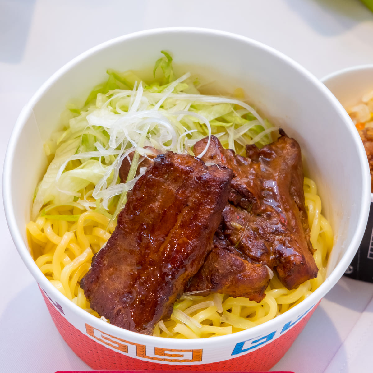 香ばしく焼き上げたスペアリブががっつりトッピングされたクールな冷麺。