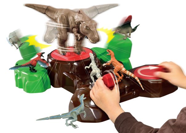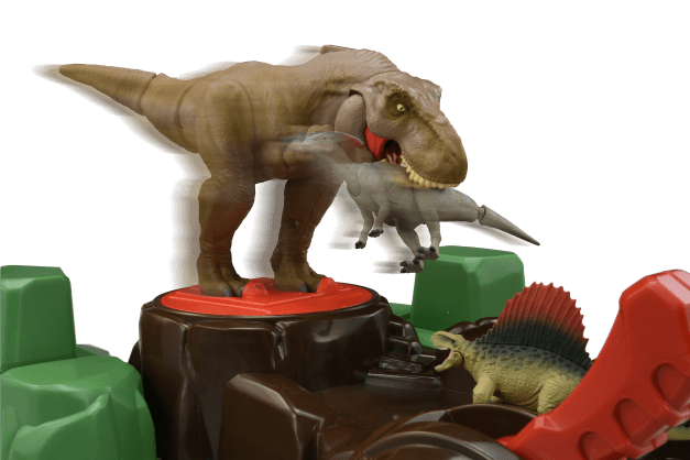 レバーとハンドルを操作し、巨大なT-レックスを前後だけでなく、回転させることにより、劇中のイメージさながらのダイナミックな動きで、暴れさせることができます。