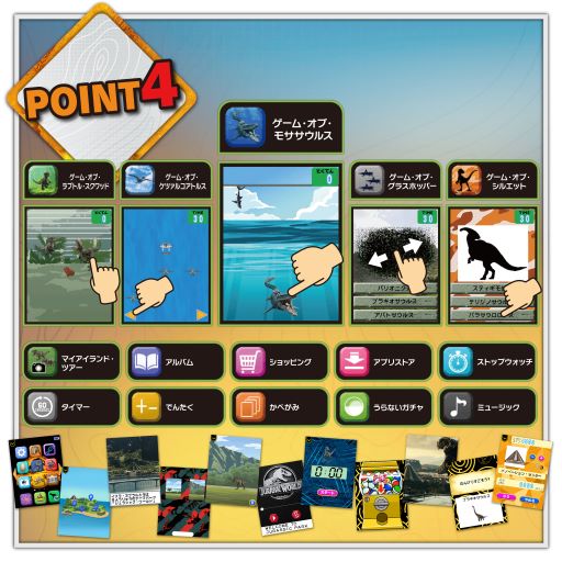 ポイント1)満載の恐竜遊び(全28種類のアプリ)