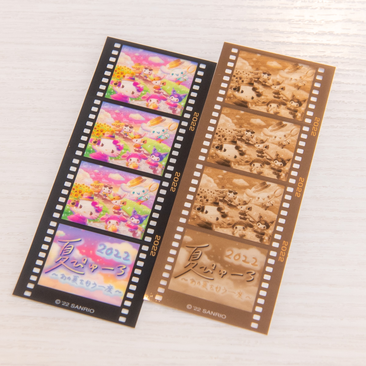 本物のカメラフィルムのように透けたデザインで、カラーとセピアの2枚セット。