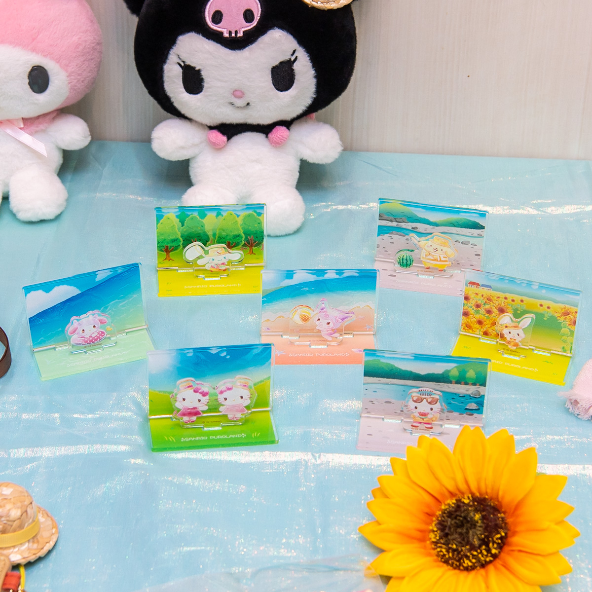 頭にトンボが付いた姿がキュートな「シナモロール」や、スイカ割りを楽しむ「ポムポムプリン」