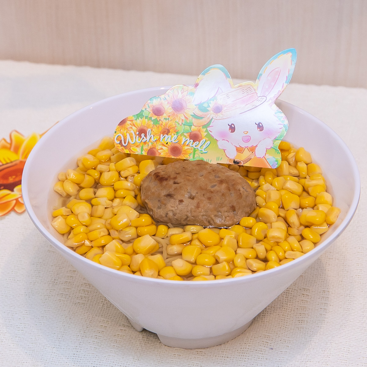 ハンバーグとコーンを大きなひまわりに見立てたラーメンです。