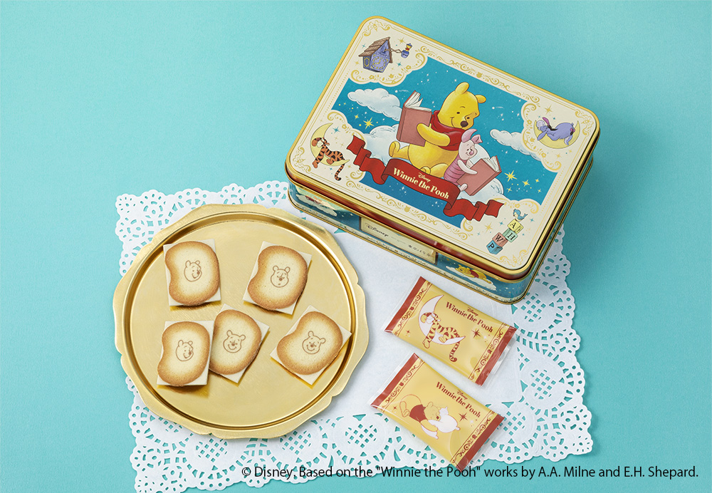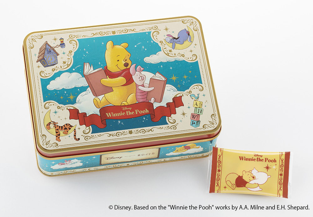 スペシャル缶の蓋には、ぷかぷか浮かんだ雲にのって親友「ピグレット」と一緒に読書を楽しんでシーンや、「ティガー」や「イーヨー」が三日月に乗り、ぐっすり眠っている姿が描かれています。