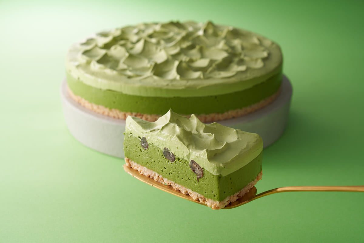 抹茶とアーモンドミルクを組み合わせた、プラントベースのケーキです。
