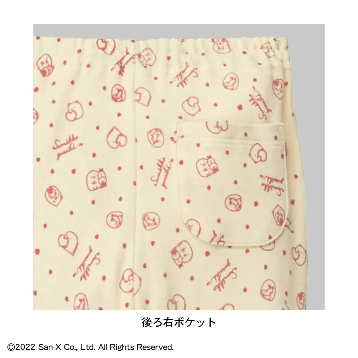 ボトムスはアイボリーカラーで、「すみっコ」たちがいっぱいのキュートな総柄です☆