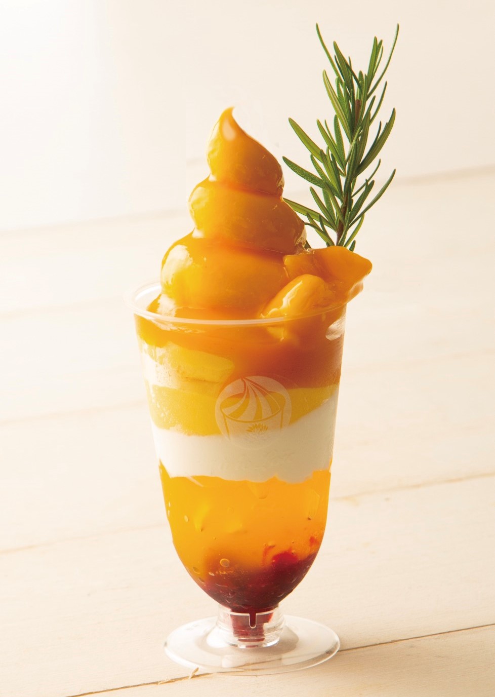 マンゴーのゼリーやソースを合わせた、どこを食べてもマンゴーの味わいが存分に堪能できるパフェです。