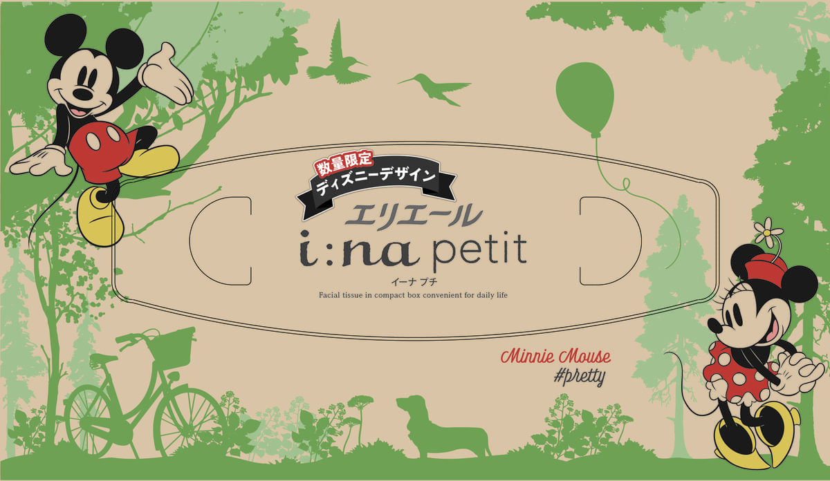エリエールの「i:na(イーナ)ティシュー」 と「i:na petit(イーナ プチ)ティシュー」から、ディズニーデザインが登場。