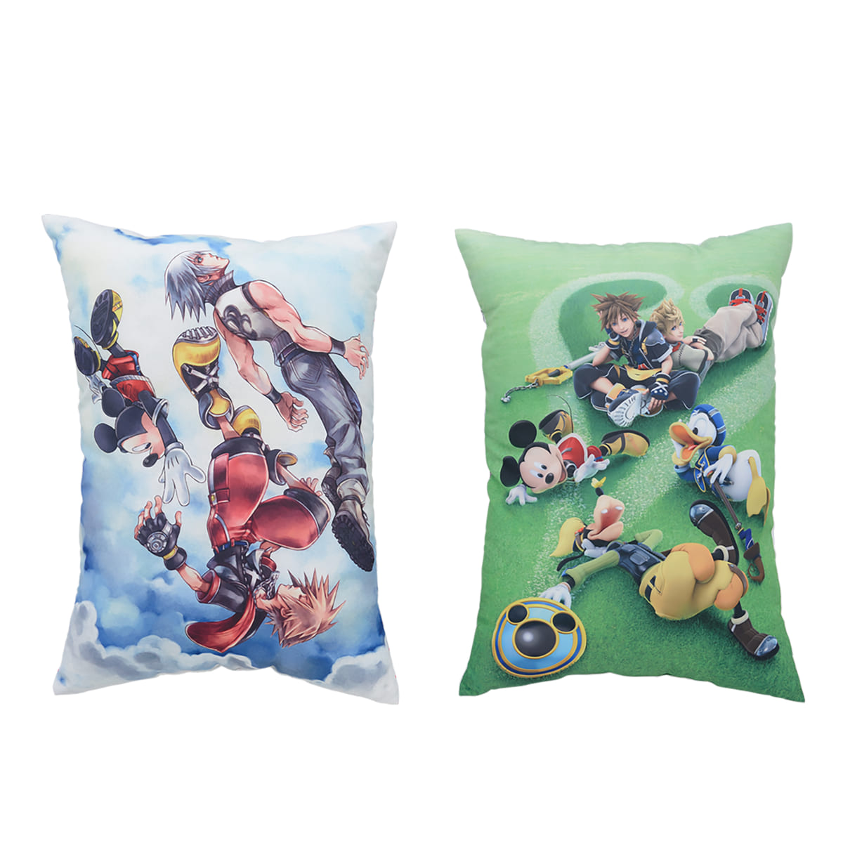 両面に『キングダム ハーツ』の異なるアートがプリントされたクッションです。