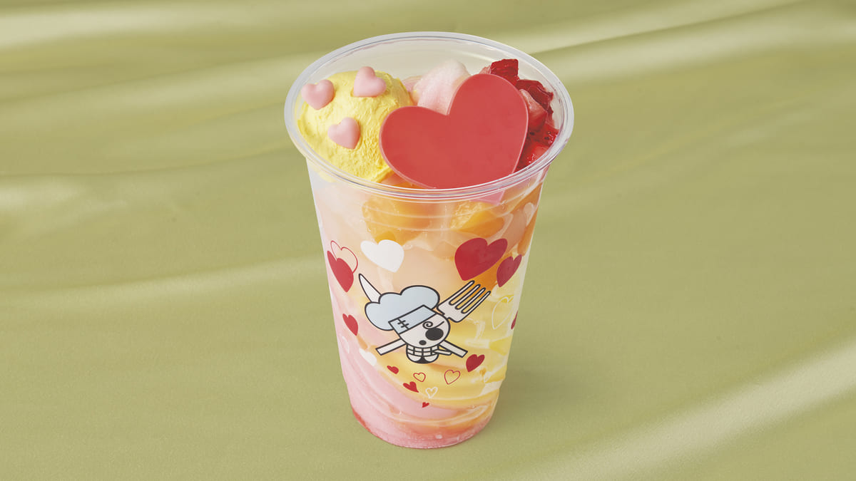 ハートをあふれんばかりにトッピングした「サンジのメロリン♡フローズン・スムージー~ピーチ&レモン~」