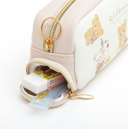 どちらもほんわかやさしいタッチのイラストとゴールドの金具が上品なペンポーチです。