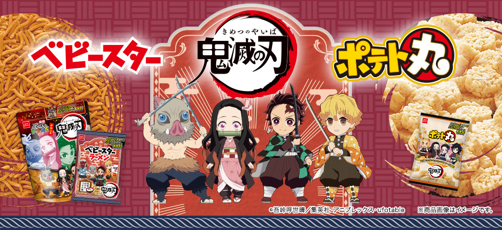 そのほか、ベビースターラーメンとポテト丸もテレビアニメ「鬼滅の刃」パッケージで販売中です。