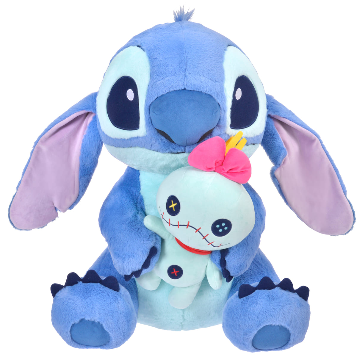 大きな目と垂れ下がった耳が可愛い「スティッチ」が「スクランプ」を両手に抱えています。