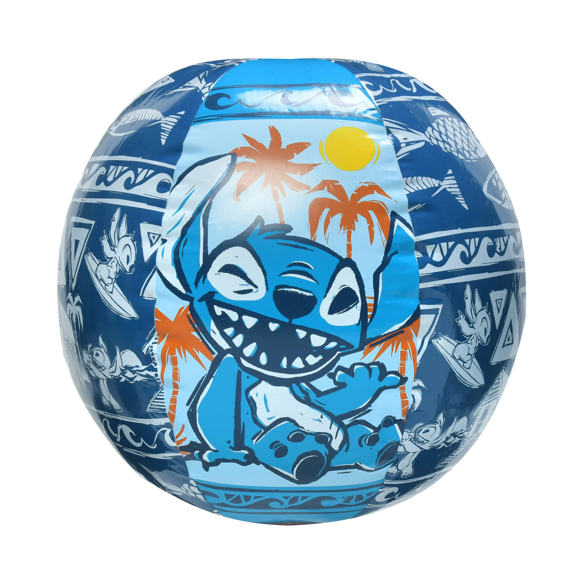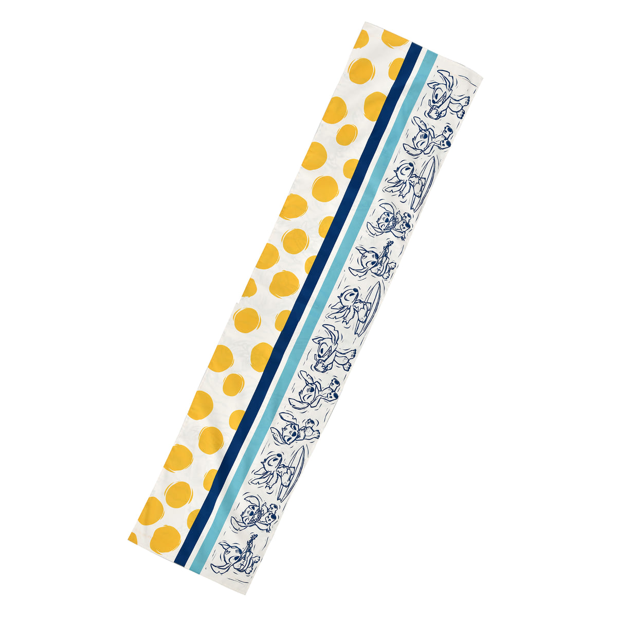 片面にはマリンスポーツを楽しむ「スティッチ」と「エンジェル」が総柄でプリントされています。