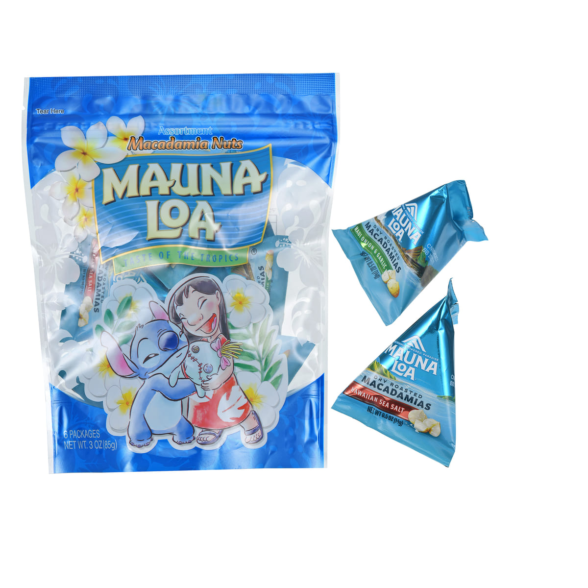 今回は、ハワイNo.1のシェアを誇るマカデミアナッツブランド「MAUNA LOA(マウナロア)」との共同企画フードとして、『リロ&スティッチ』スペシャルパッケージのマカデミアナッツがラインナップ。