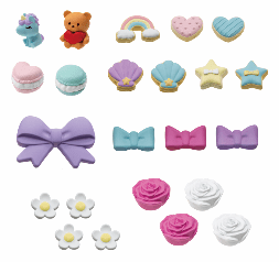 ユニコーン・くま・リボン大 各1個×3、ハートマカロン・マカロン 各1個×2、バラ(白)・バラ(ピンク)各2個×4、デイジー×4