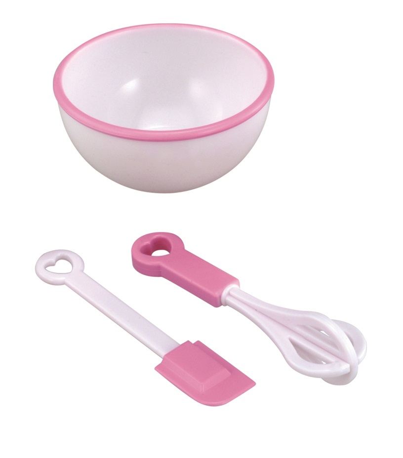 セット内容:人形(ドレス、ソックス、イヤリング、下着着用)×1、クツ×1、帽子×1、ボウル×1、ヘラ×1、泡だて器×1