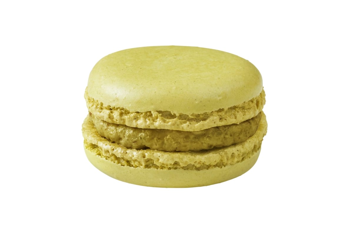 食感と香りが楽しめるサクッとしたマカロン生地に香ばしいピスタチオの味わいを楽しめるクリームをサンドした「マカロン ピスタチオ」