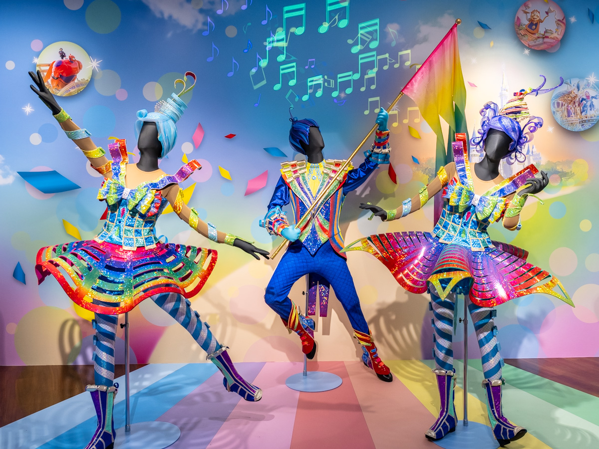 パレードのスタートに合わせて開催するこの特別展示では、「ディズニー・ハーモニー・イン・カラー」のメイキングにスポットライトをあてており、通常は見ることができないようなコスチュームデザインスケッチや生地見本、フロートの模型などの展示を通して、パレード制作現場の雰囲気を感じることができます☆