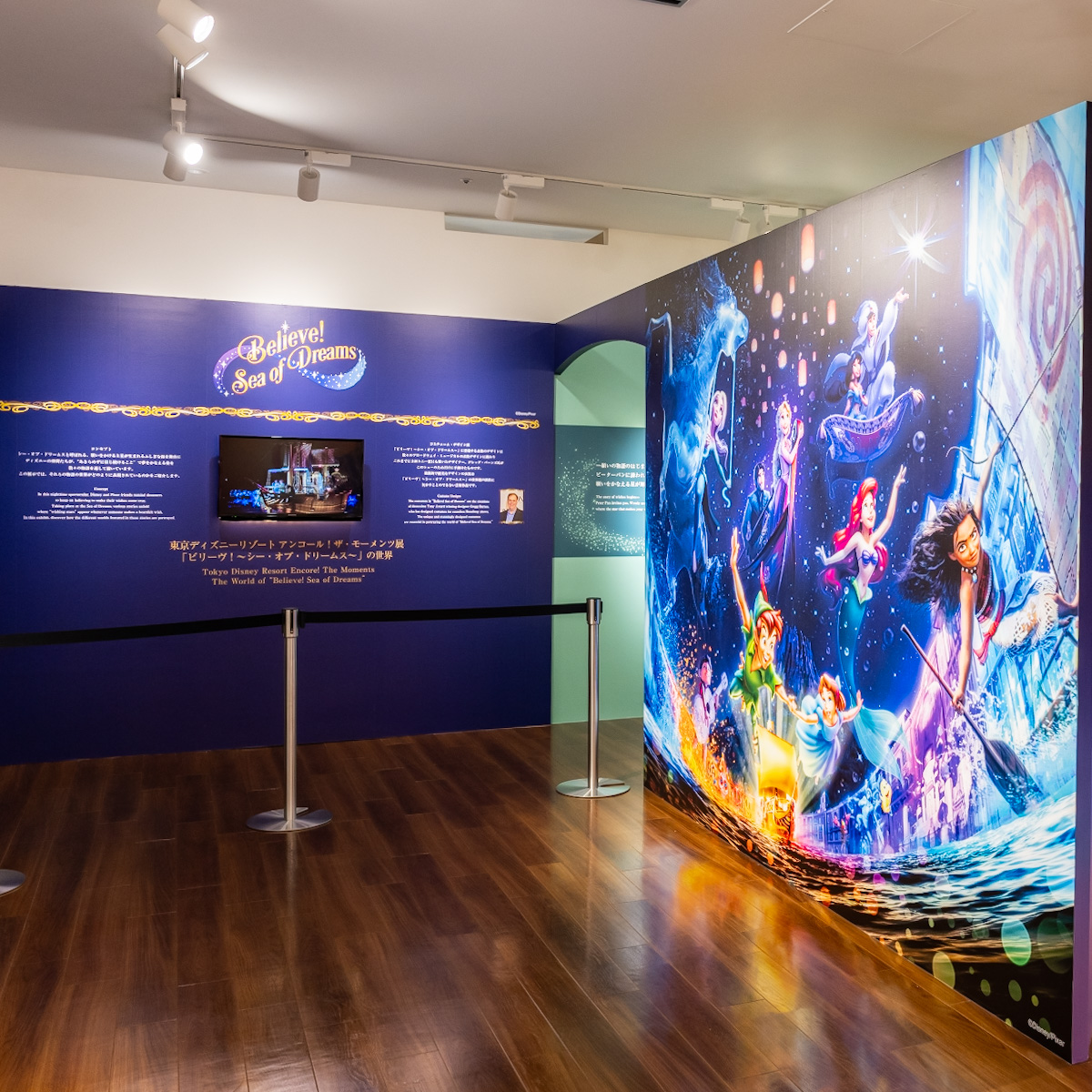 この展示では、2022年秋から東京ディズニーシーで始まったナイトタイムエンターテイメント「ビリーヴ!〜シー・オブ・ドリームス〜」にスポットをあてています。