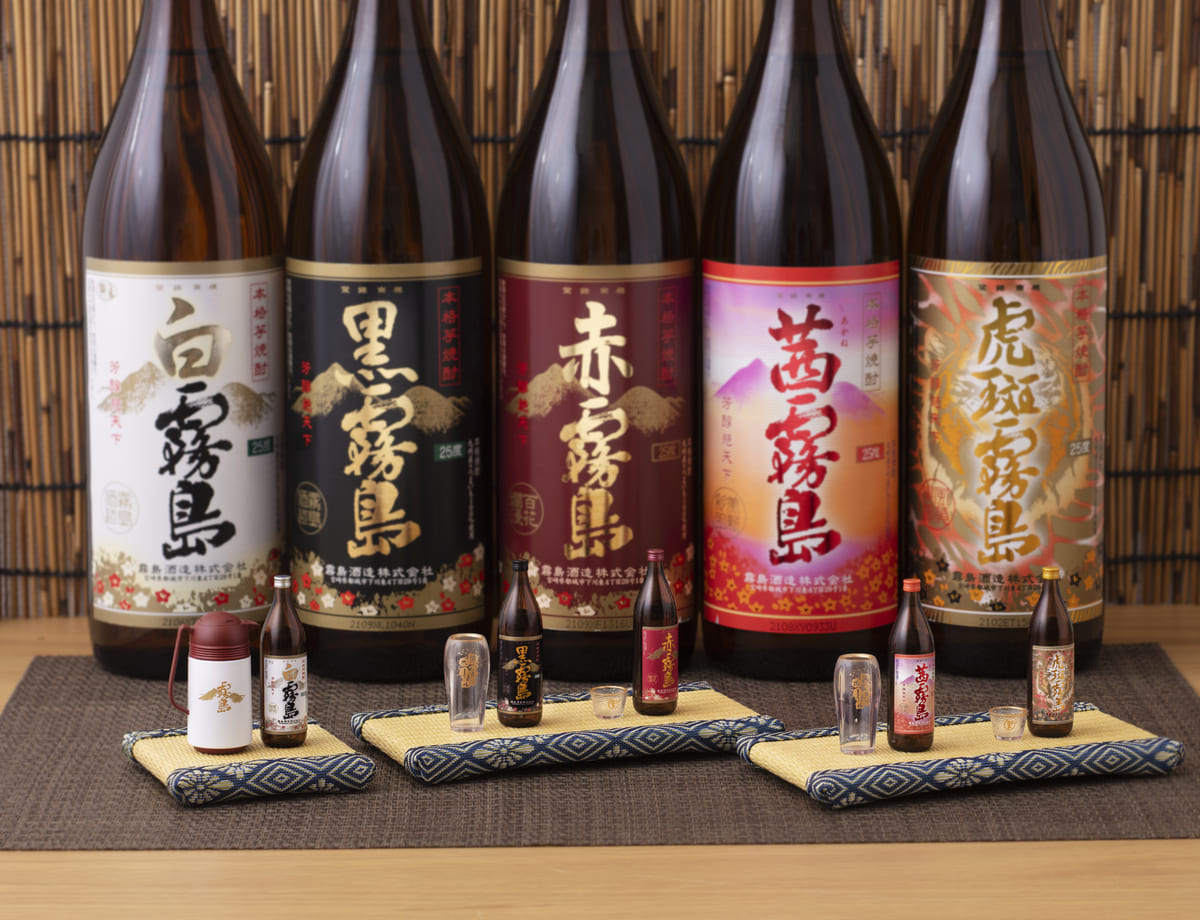 種類は「白霧島」「黒霧島」「赤霧島」「茜霧島」「虎斑霧島」の全5種がラインアップ。