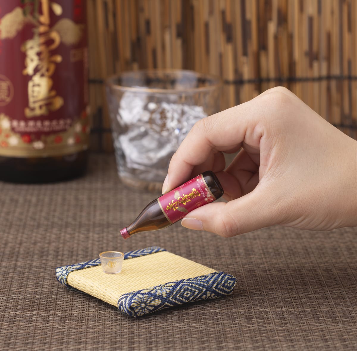 ボトルと小物がセットなので、実際に焼酎を飲むシチュエーションを楽しむことができます。
