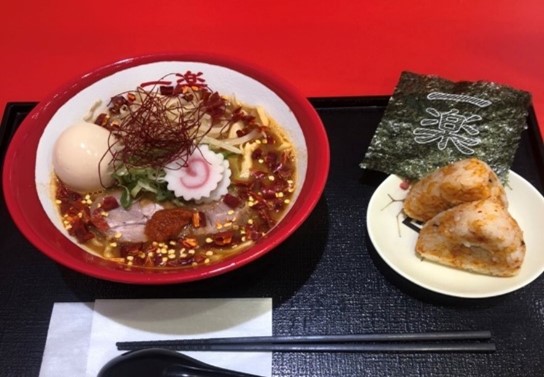 「イタチ」の好物である、昆布おにぎりも特別仕様の激辛味で、ラーメンとの相性は抜群で最後まで刺激的な味わいが楽しめます。