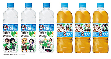 テレビアニメ「鬼滅の刃」のオリジナルイラストのデザインボトルは「GREEN DA・KA・RA」の600mlペットボトルと「GREEN DA・KA・RA やさしい麦茶」の680mlペットボトルで展開!