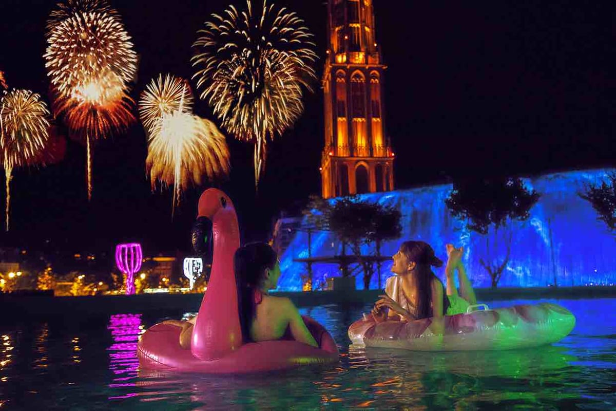 「ガーデンプール」は煌びやかなイルミネーションに囲まれ、巨大な光のカーテン・光の滝とウォーターキャノンがコラボレーションした夏限定の光のショーが開催されます。