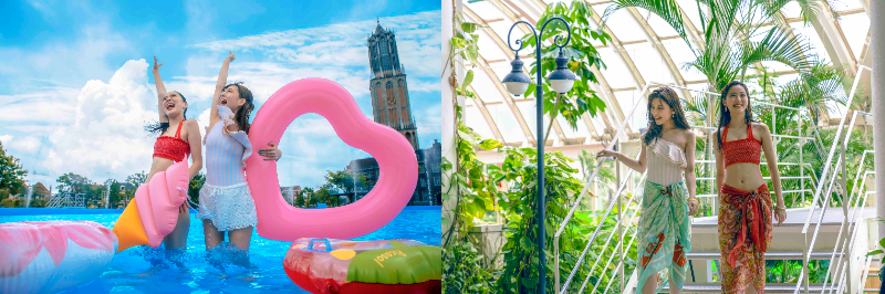 リゾート感あふれる2つのプールが登場し、夜は幻想的なナイトプールに変身。