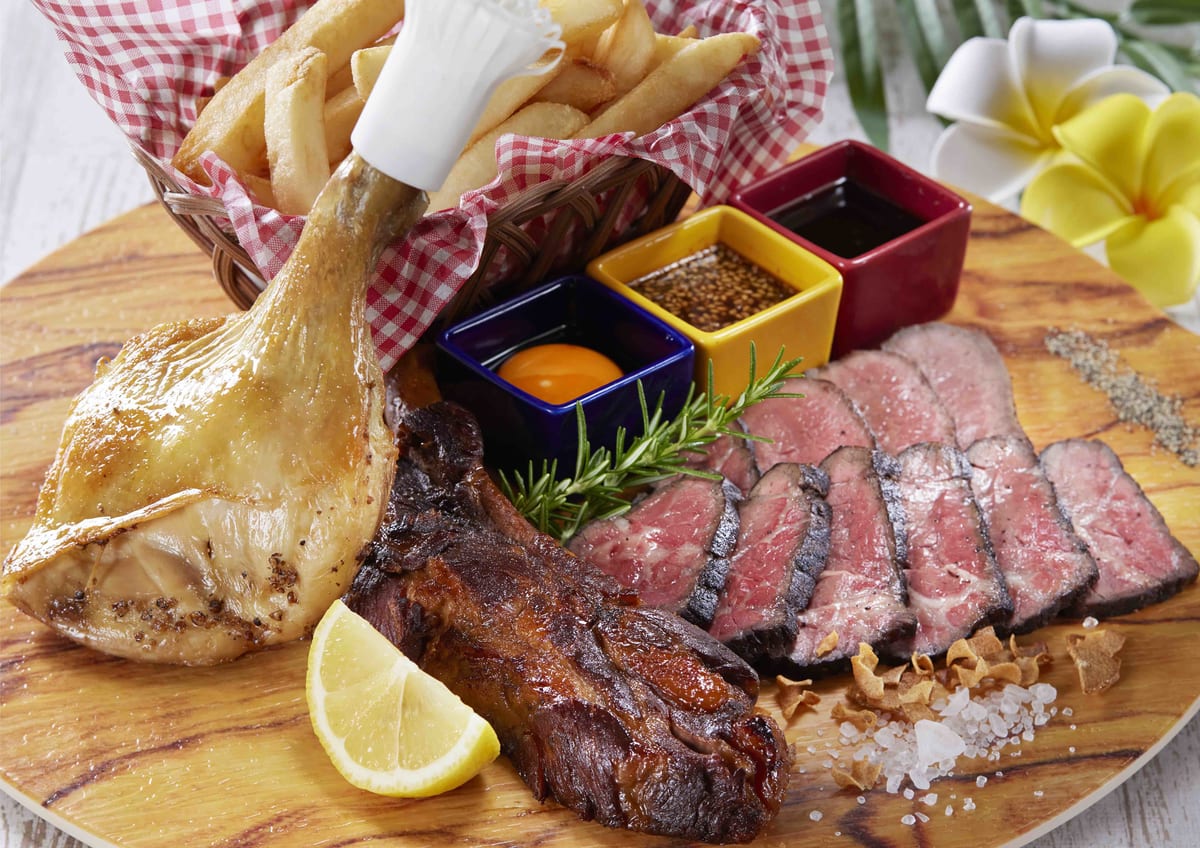 国産牛のグリルプレートやスペアリブといった、リゾート感たっぷりの絶品グルメも。