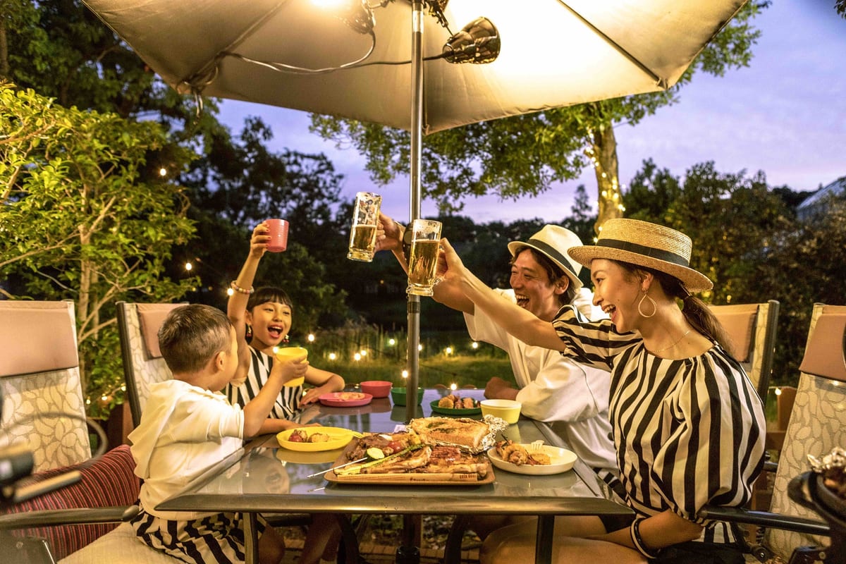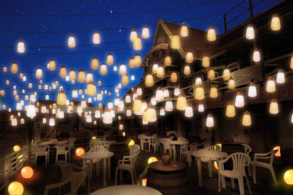 「ベイサイドパーティプレイス」は、夜になるとランタンの光で包まれ、海外の屋台のような雰囲気に。