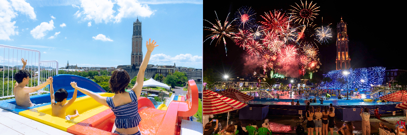 直径50mの巨大な流れるプールがある「ガーデンプール」は、シンボルタワー・ドムトールンの目の前にあり、ヨーロッパの街中で泳いでいるような気分に☆