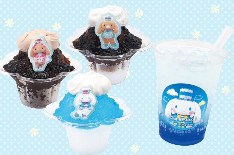 「シナモロール20thメニュー」には、ひんやりスイーツやドリンクが充実。