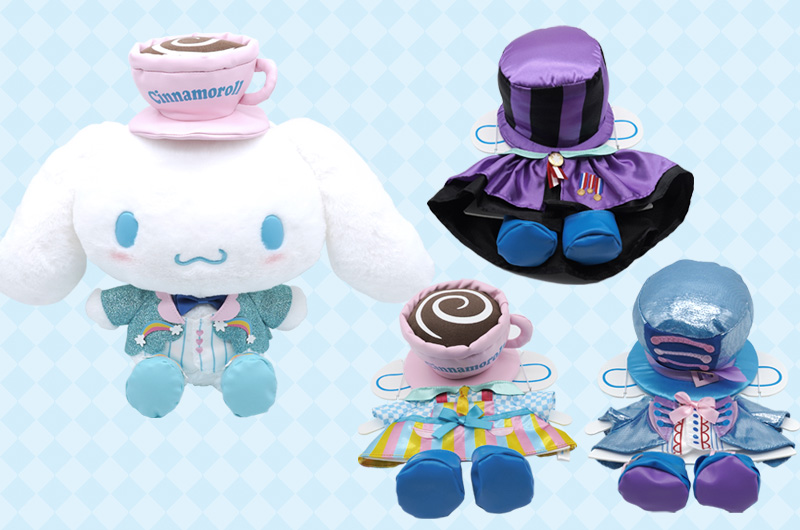 全4種類のコスチュームにきがえられるシナモロールおきがえぬいぐるみ」