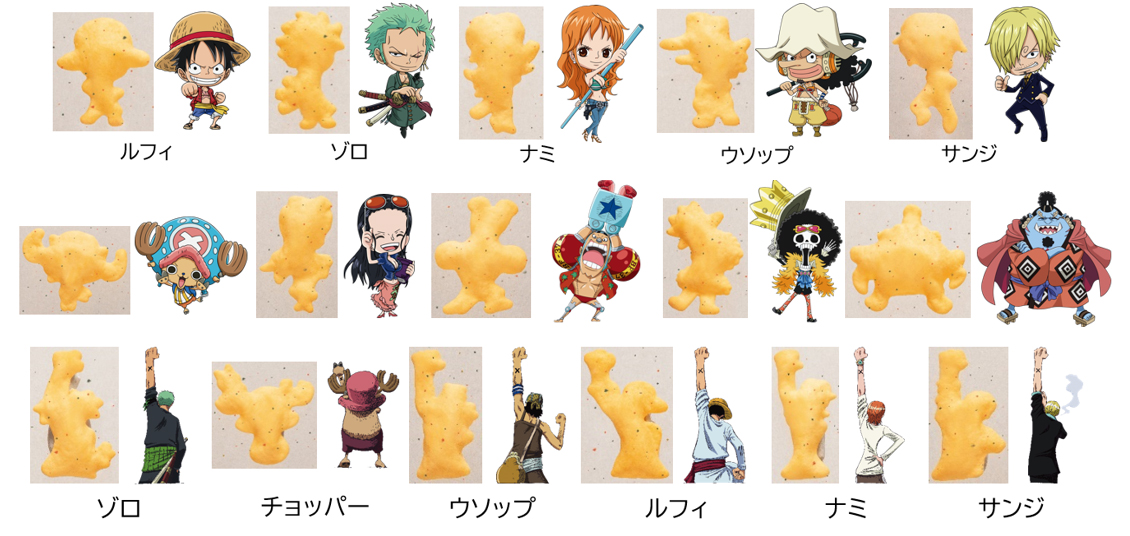 「麦わらの一味」の10人と「ONE PIECE」のなかまたちが、おっとっとの菓子型になりました!