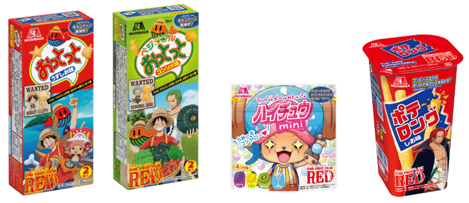 森永製菓の「おっとっと」「ハイチュウミニ」「ポテロング」の3種のお菓子と『ONE PIECE FILM RED』が、映画公開を記念してコラボレーション!