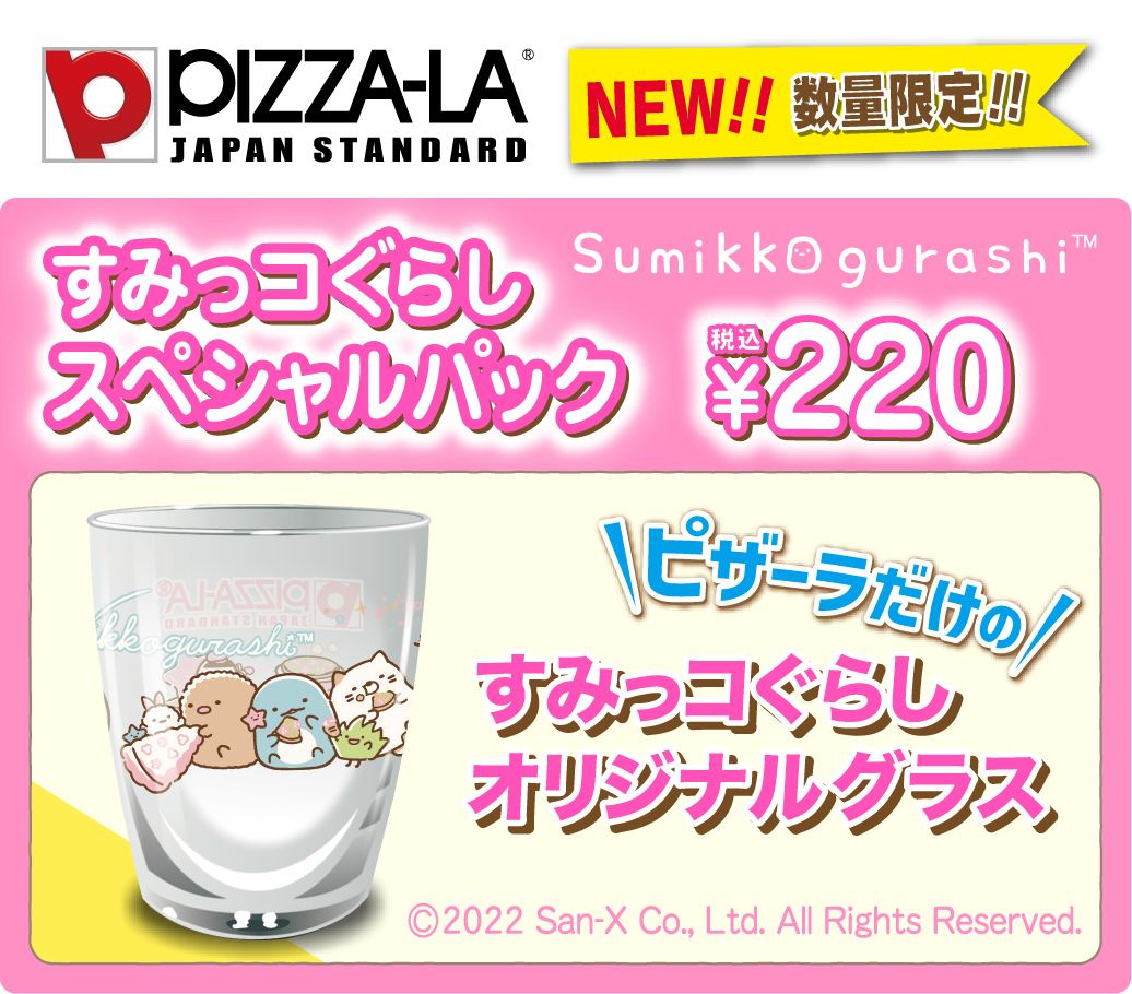 PIZZA-LAにて、サンエックスの人気キャラクター「すみっコぐらし」のオリジナルグッズが購入できる「すみっコぐらしスペシャルパック」を発売。