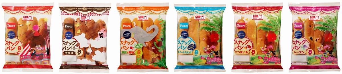 「スナックパン8本入」、「スナックパンチョコ8本入」、 「スナックパン野菜と果物8本入」