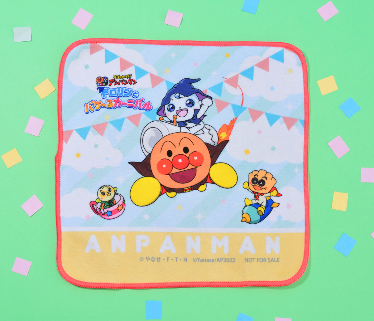 「アンパンマン」や「ドロリン」たちがデザインされたハンドタオルです。