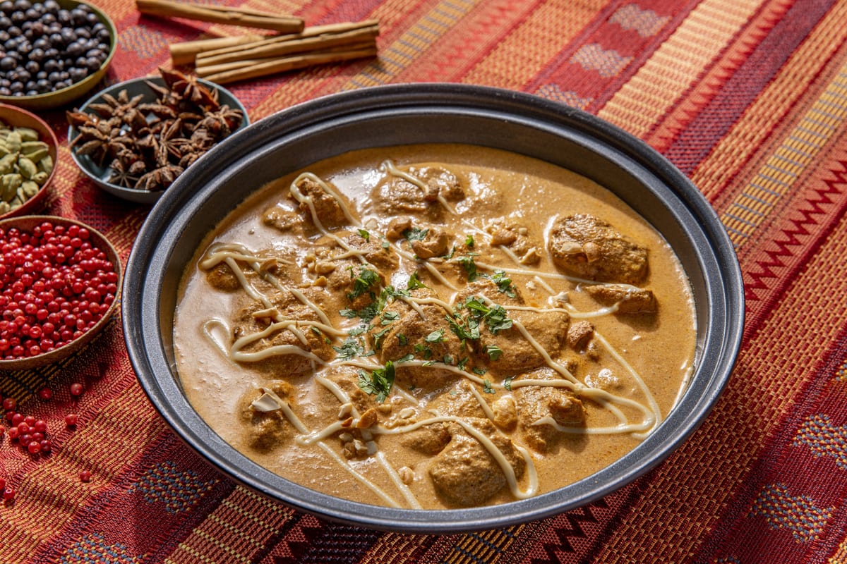 トマトとヨーグルト、各種スパイスで骨付きチキンを煮込み、バターとクリームをたっぷり使用した人気の「バターチキンカレー」