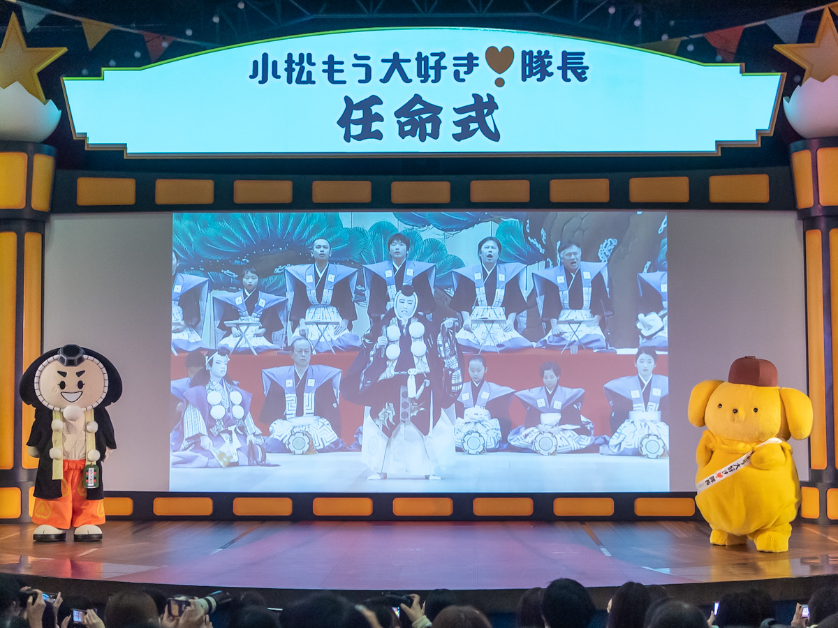 サンリオピューロランドでは応援隊長任命を受けて、「小松もう大好き!隊長任命式」を開催。