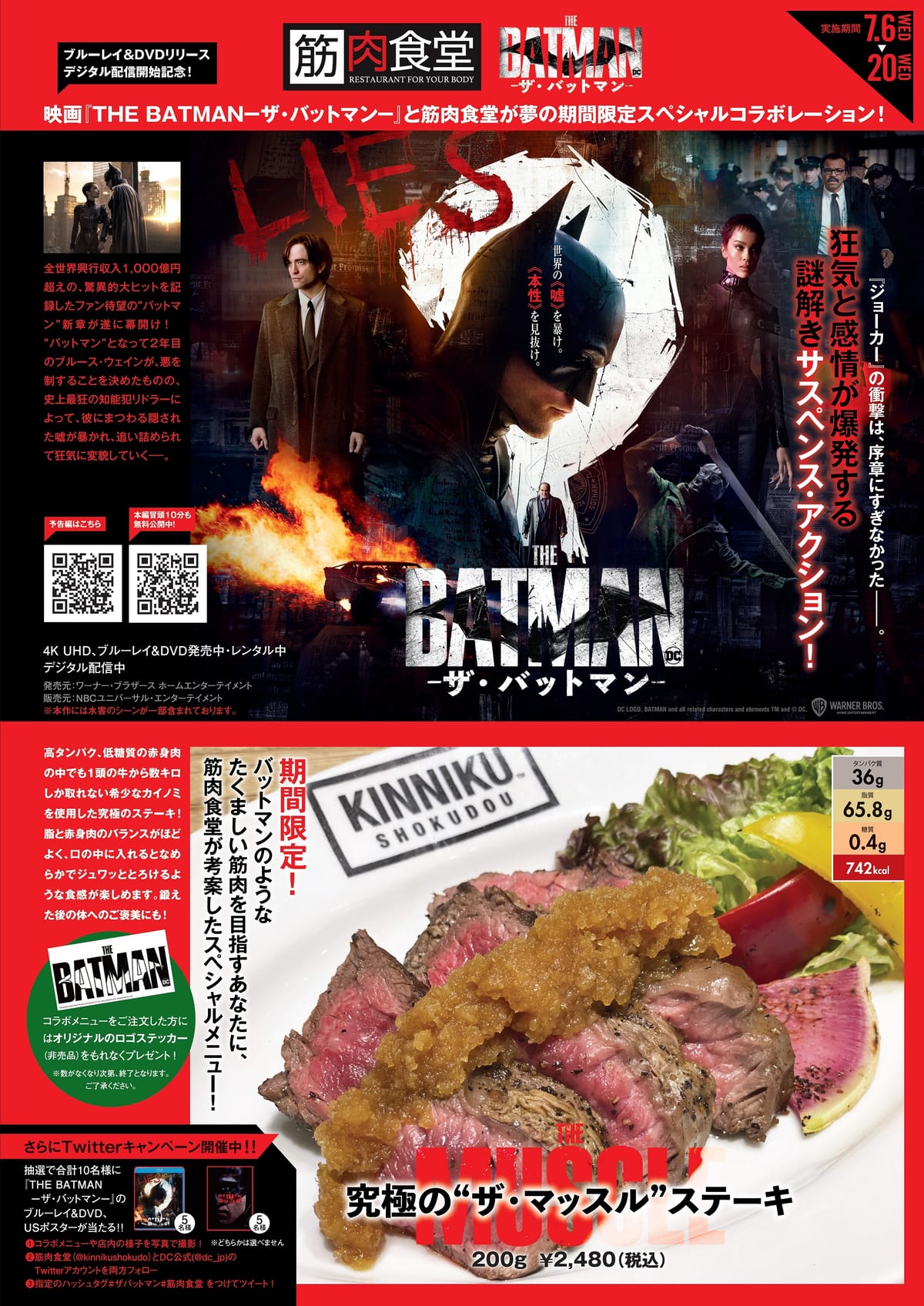 筋肉食堂『THE BATMAN-ザ・バットマン-』コラボ「究極の”ザ・マッスル”ステーキ」