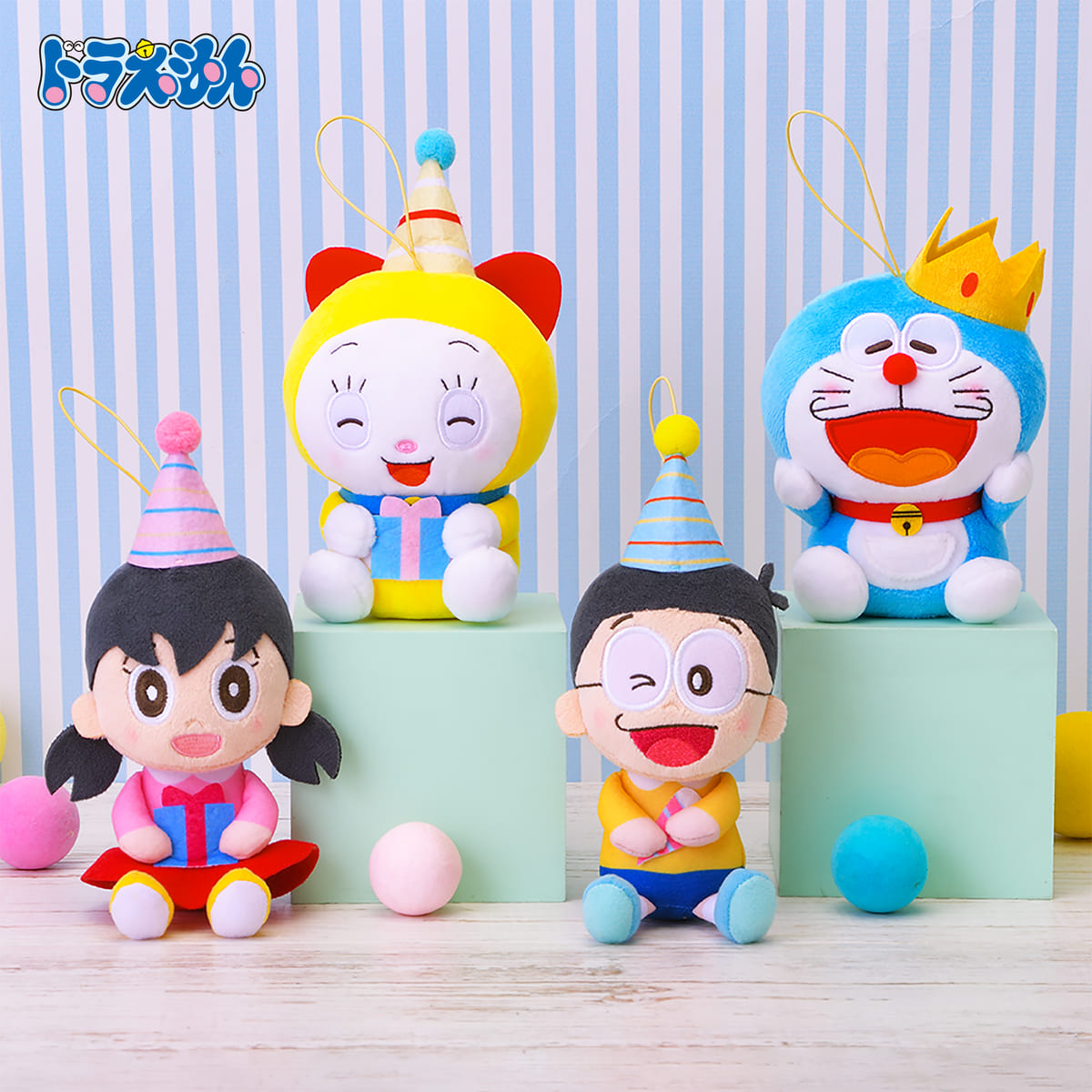 2022年の夏より「ドラえもん」の誕生日をお祝いするパーティー姿のぬいぐるみや、ふわふわクッション、取り付けに便利なストラップ付きのマスコットが投入予定です☆