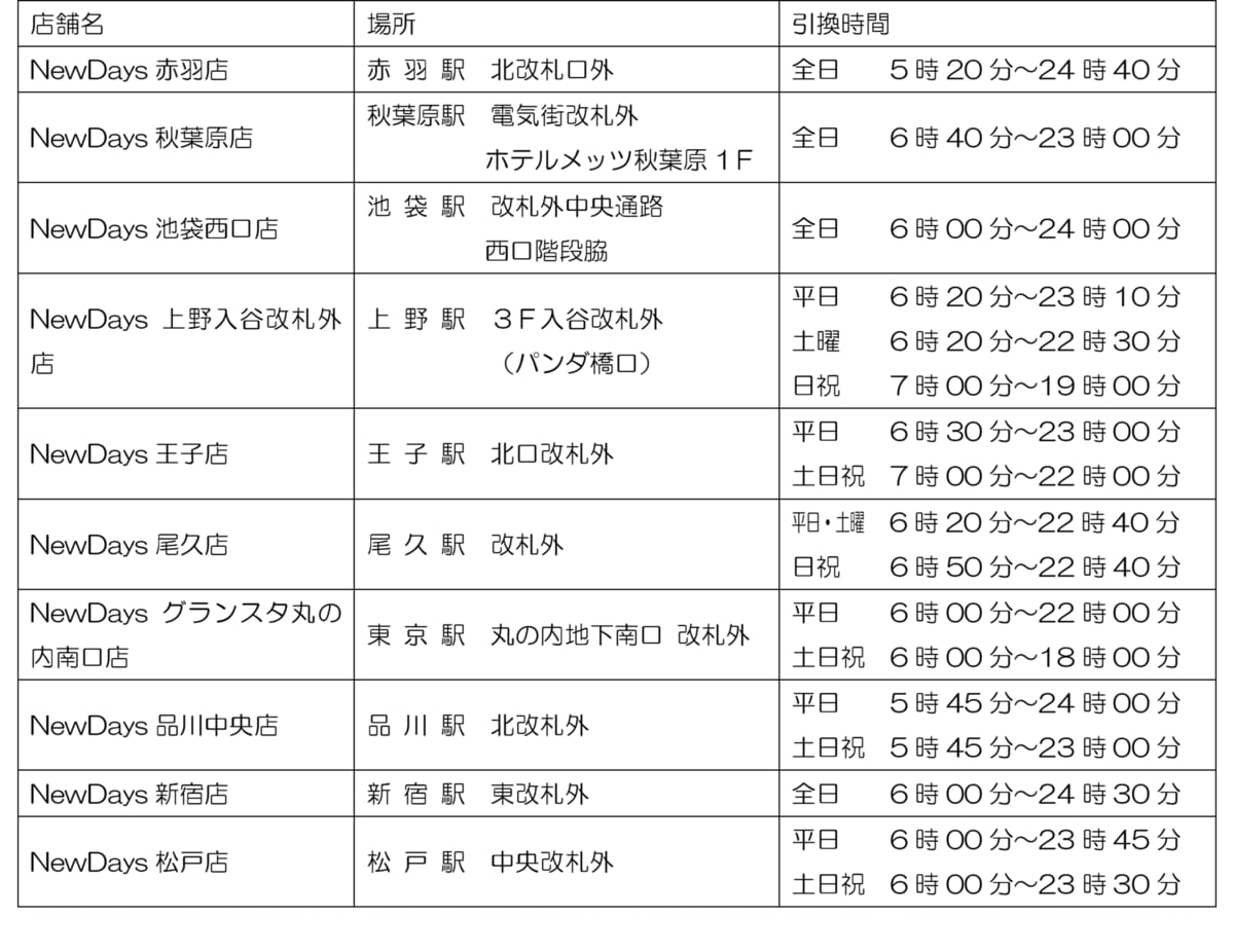 7駅のスタンプを集め、ゴール店舗に指定されたNewDays10店舗にパンフレットを持参し、税込み500円以上購入ください。