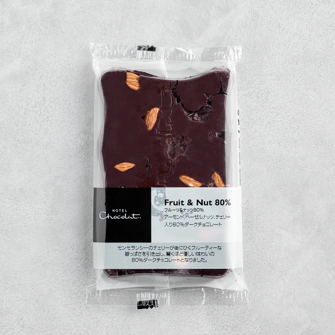 アーモンド・ヘーゼルナッツ・チェリーが入った、80%ダークチョコレート。