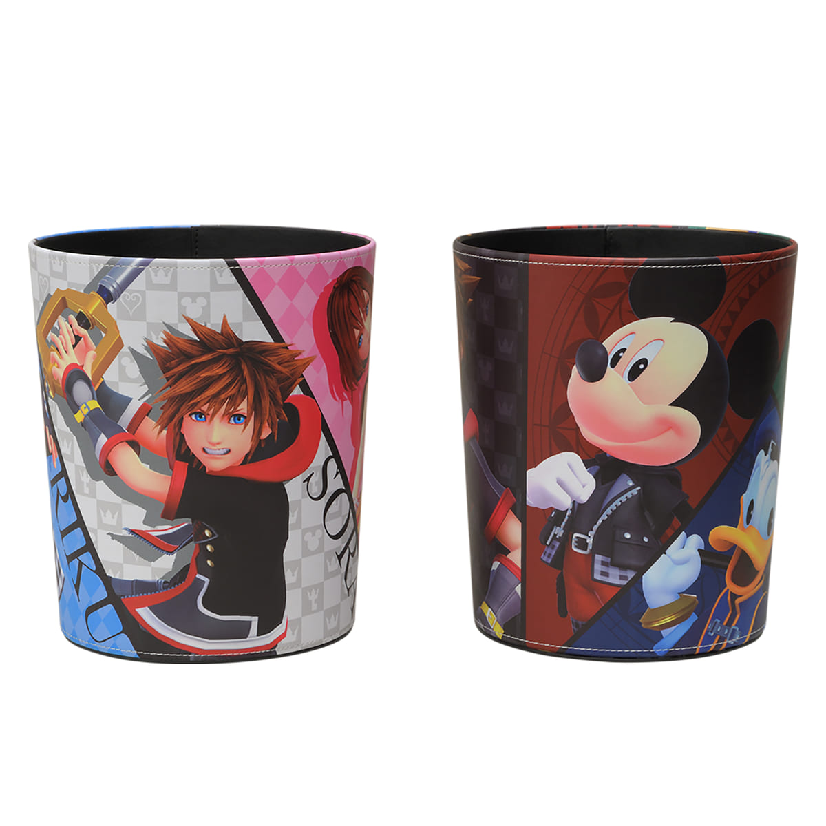 『キングダム ハーツ』の人気キャラクターたちがプリントされたダストボックス。