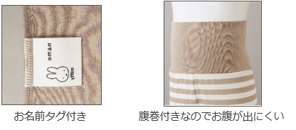 パジャマはお名前タグと、寝冷え対策になる腹巻付き。