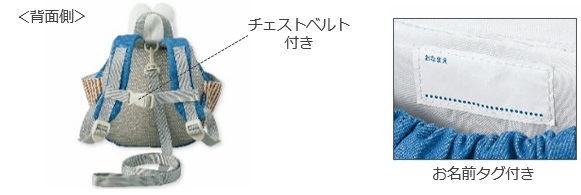 お子さんが迷子にならないよう、迷子ヒモも付いています。