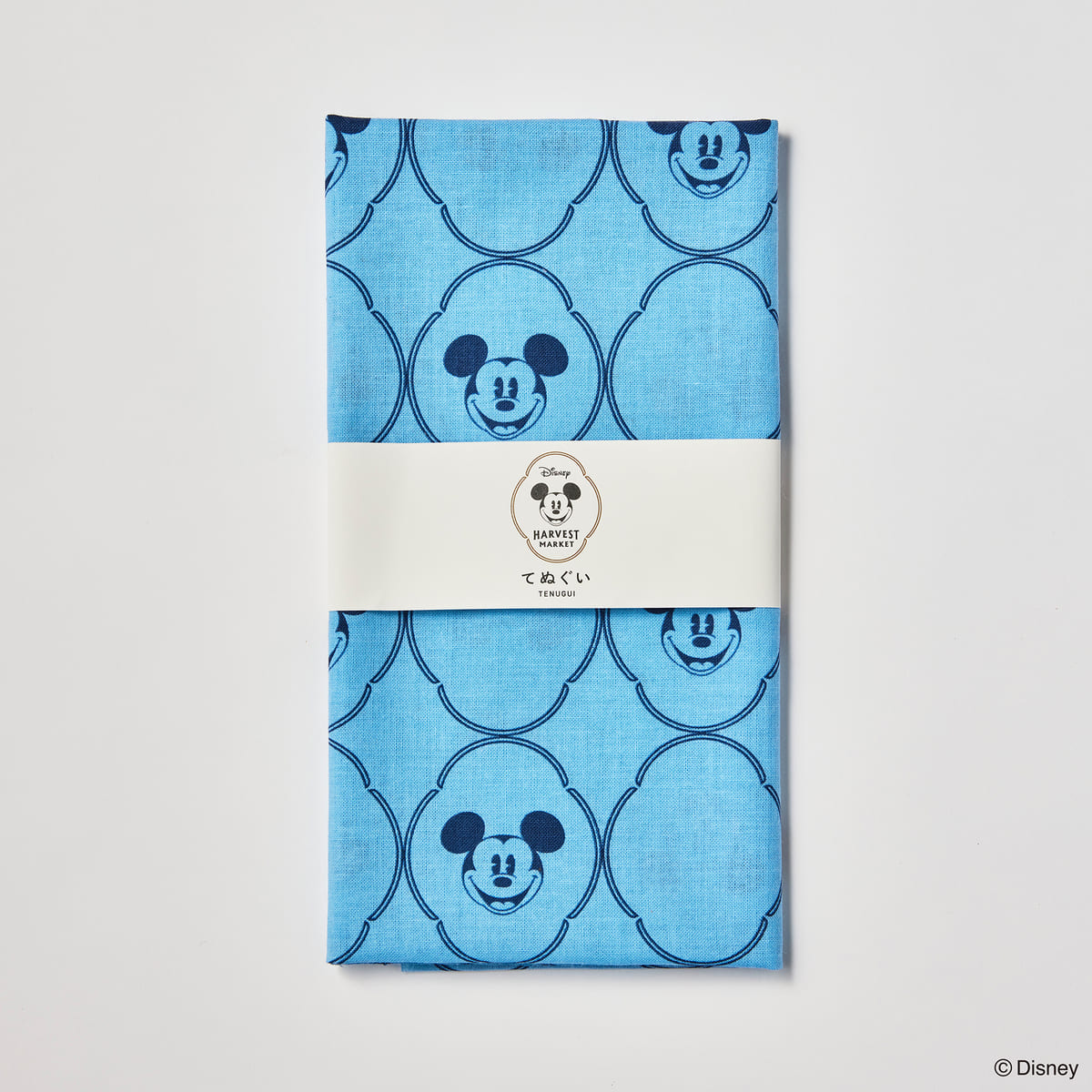 また、店頭のギフトショップでは、淡い藍色のベースに「ミッキーマウス」のモチーフをモノグラム柄にデザインした暑い季節にぴったりな手ぬぐいの販売もスタート!