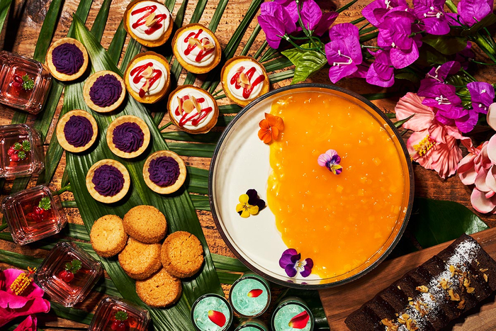 「ココナッツプリン マンゴーソース」や「紫芋のプチタルト」は、ハワイらしい色鮮やかさ☆